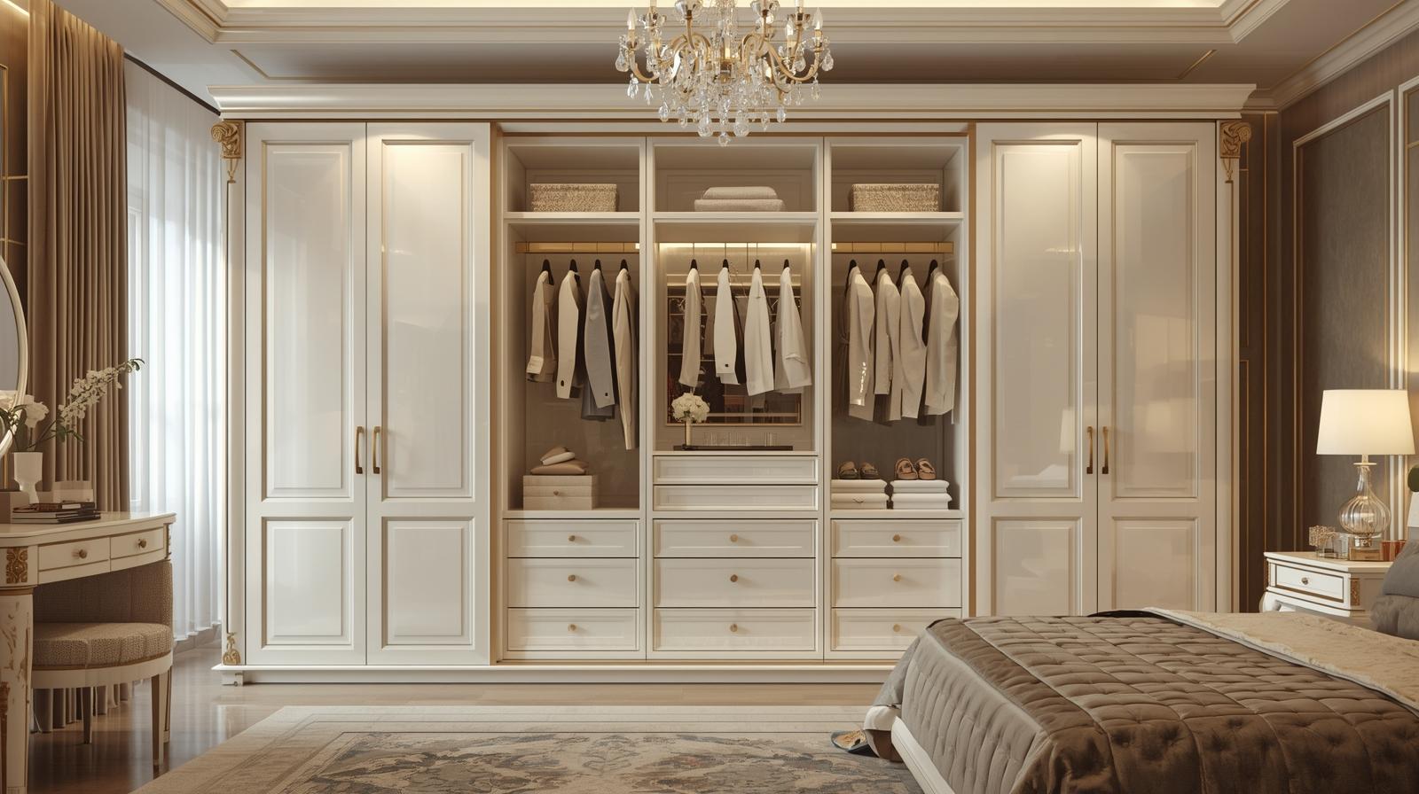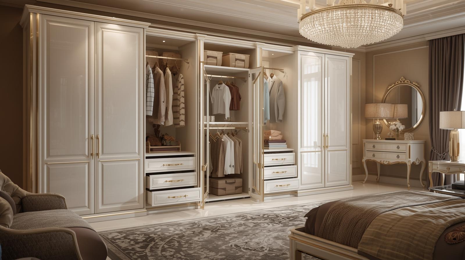 Tủ quần áo cao cấp cửa mở: truyền thống, dễ sử dụng, phù hợp phòng rộng.